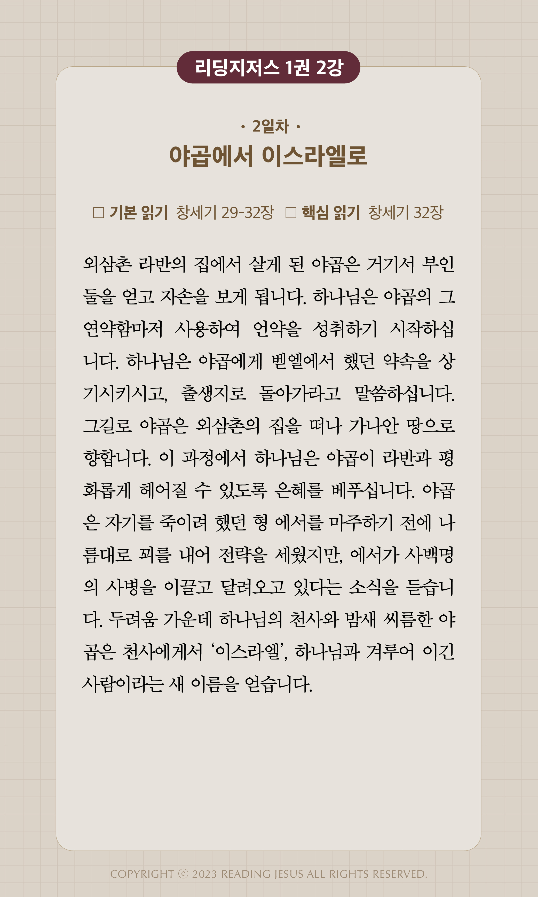 2주 2일차 │ 3월 10일 │ 창세기 29-32장