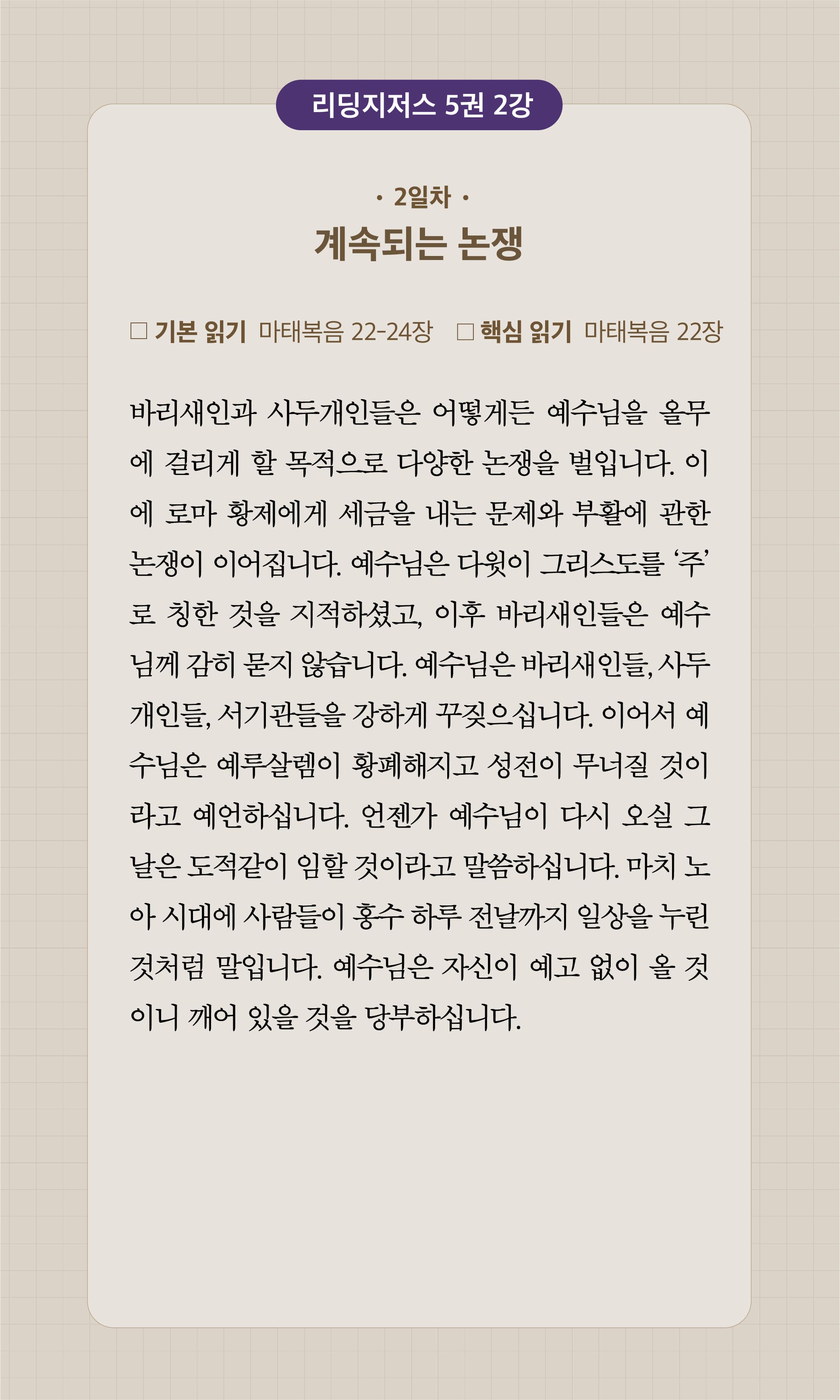 33주 2일차│10월 1일│마태복음 22-24장
